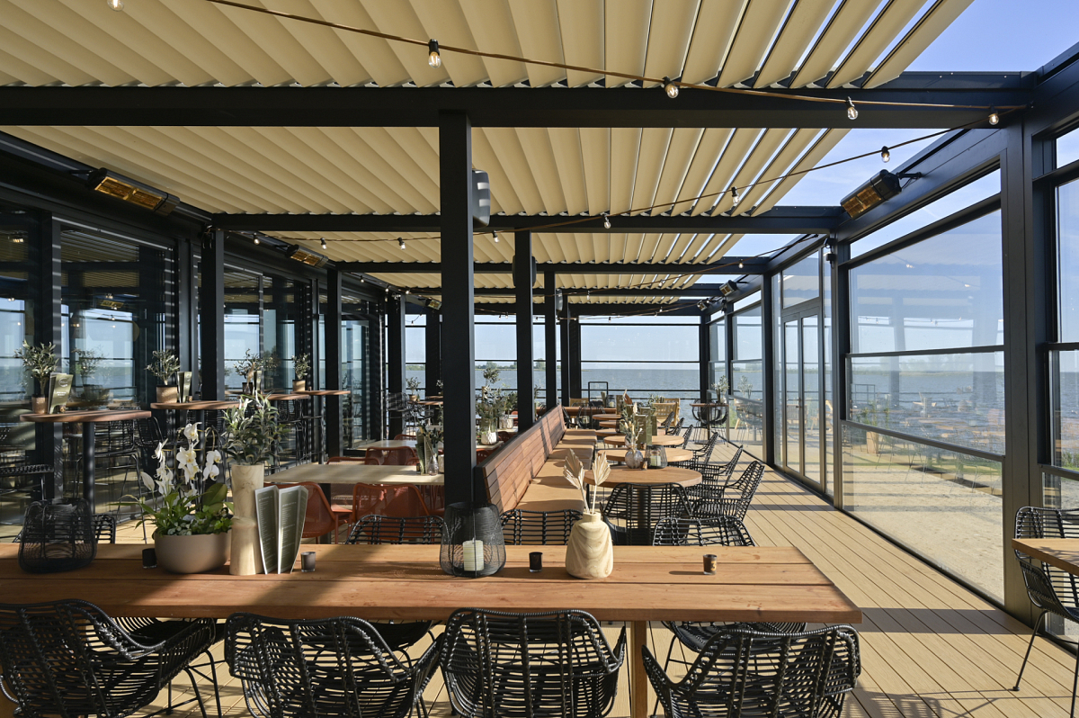 Bohemian Beach ligt pal aan het IJsselmeer en ademt ontspanning en een relaxte Ibiza vibe. Aan het water wisselen zon, wind en regen elkaar snel af. Het jaarrondterras is daarom ontworpen voor alle weersomstandigheden. Dankzij inschuifbare lamellendaken, borstweringen én de dimbare Somfy heaters beschikt de hotspot over een trendy, functioneel én flexibel horecaterras. Gasten beleven het hele jaar een vakantiegevoel.